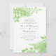 Convites de casamento verdes e brancos de tendências que incluem samambaias, galhos e folhas concebidos para serem rápida e facilmente personalizados de acordo com as suas especificações de evento.