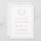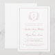 Este elegante convite para o casamento mostra uma poeirenta crista rosa de folhas com a noiva e o monograma do noivo com uma dupla borda. O texto é rosa empoeirado e o verso do convite é branco. Esta é parte da coleção Mínima Crest & Leaves.