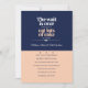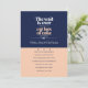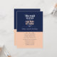 Um convite de casamento moderno em azul marinho e cor de pêssego. O cartão é fácil de personalizar com seu texto, fonte e cor da fonte. Não exatamente o que você está procurando? Todos os nossos produtos podem ser personalizados para atender às suas necessidades sem custos adicionais. Basta entrar em contato conosco em askpixieprints@aol.com. Produtos de coordenação disponíveis: coma placas RSVP de Font de Bolo. Quer outra coisa? Apenas nos pergunte