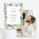 Primavera Wildflower Photo Wedding Convite. Flores de aquarela, modernas, elegantes e coloridas, com lugar para a foto do casal atrás. Estas flores silvestres de aquarela, brancas e brancas, com belas borboletas, são felizes e perfeitas para casamentos de primavera.