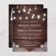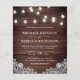 Incêndio aos seus convidados com este elegante convite de casamento com lindas lâmpadas de cordas e rendas brancas com a tipografia moderna num fundo de madeira rústica. Basta adicionar os detalhes do seu evento neste modelo fácil de usar e enfeitar este cartão com suas fotos e monograma favoritos na parte de trás do cartão para torná-lo um convite personalizado único.
