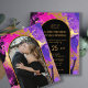 Escovas elegantes e elegantes únicas e sofisticadas, pinceladas abstrato pintando fotos convite para casamento em uma paleta cor roxa-rosa magenta vibrante com dourada moderna escrita contemporânea, totalmente editável, sobre uma forma sólida de arco preto. +++++++++ O convite é adequado para todas as estações em que os casamentos de chic são convertidos. ++++++++++++++ Fácil de personalizar com os seus detalhes e a sua fotografia no verso.+++++++++++++++++++++ LEIA ISSO ANTES DE COMPRAR! Este é um cartão de casamento de barato orçamentário impresso em uma folha de papel (cada folha tem um cartão). +++ Para obter a melhor qualidade de preço, nosso conselho é escolher o tipo de papel Semi-Gloss (é espesso o suficiente para ser usado para papelaria) +++ Se você precisar de envelopes, escolha a OPÇÃO ENVELOPE. ++ Verifique duas vezes todas as informações e a ortografia do seu texto porque você receberá exatamente o que você vê - ninguém mais verificará nada antes de imprimir. +++ Esta placa foi projetada para o tamanho de 4,5" x 5,6". Caso você escolha outro tamanho do cartão e o texto saia da página, tudo precisa ser corrigido antes de adicionar o produto ao carrinho. Peça ajuda ao Serviço de Design ao Vivo.
