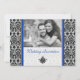 Convite para Casamento de Foto Real Blue Damask
