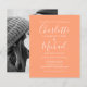 Apresentando sua foto, nomes de estilo de assinatura, este elegante convite de casamento de pêssego do orçamento pode ser personalizado com suas informações em letras de música. Projetado por Thisnotme©