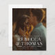 Uma camada moderna com grandes nomes e uma foto de sangria de cheio são as características deste convite de casamento. Clique em editar para personalizar este design.