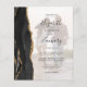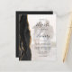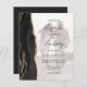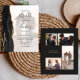 Este elegante design de casamento apresenta uma foto vertical do casal amolecida com uma tela branca para destacar a camada de texto. A borda esquerda apresenta uma borda preta de aquarelas aparada com falso brilho dourado. O texto preto personalizável combina escrita manual, impressão e fontes itálicas. O verso fornece espaços para 4 fotos (1 quadrado, 2 horizontais, 1 vertical longo) e espaço para o seu site de casamento URL ou outras informações.