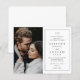 Um simples convite de casamento preto e branco com foto. Clique no botão editar para personalizar este design com sua foto e detalhes.