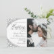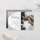 Convite para casamento de luxo, chic, elegante, preto prateado e branco falso com fotografia e roteiro de caligrafia moderno.