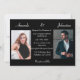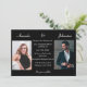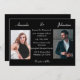 Convite para casamento de fotos em preto e branco Elegante Este convite para casamento em preto e branco apresenta duas fotos verticais em um fundo preto com blocos brancos e letras de script. Adicione o texto com os detalhes do evento. Este convite também será adequado para um casamento, chá de fraldas, graduação ou festa de aniversário.