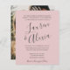 Convite para Casamento de Fotos por Caligrafia Simples Moderna - apresenta os nomes da Noiva e do Groom, grandes e ousados na tipografia moderna, de scripts. A parte de trás do convite mostra uma bela foto da noiva e do noivo. O convite fará parte de uma suíte de casamento e estará disponível em várias cores. Você pode mudar facilmente a cor de fundo para corresponder ao seu tema de casamento. Mostrado em rosa-pincelado. Um convite simples e clássico com caligrafia bonito. * Observe que esta é uma opção de orçamento. A foto será certamente de melhor qualidade no nosso convite. Se preferir um estoque de papel mais grosso e de melhor qualidade, por favor escolha nosso convite simples. Recomendamos NÃO escolher a opção satin para o convite orçamental. Projetada por Beverly Bainbridge Homespun Cottage Designs E: homespuncottagedesigns@gmail.com