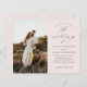 Um convite de casamento de fotos rosa, simples e chic, com detalhes elegantes de caligrafia e texto clássico na frente. As costas têm um lugar para o seu site de casamento no fundo. Você também pode carregar fotos adicionais no espaço vazio no verso. Clique no botão editar para personalizar este design.