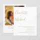 Apresentando nomes de estilo de assinatura, este elegante convite de casamento em ouro de orçamento pode ser personalizado com suas informações em letras quicas e sua foto especial no verso. Projetado por Thisnotme©