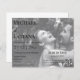 Esta é uma descrição de um convite de casamento moderno que apresenta um código QR para RSVP e uma foto em preto e branco.