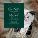 Apresentando sua foto, nomes de estilo de assinatura, este elegante convite de casamento verde esmeralda de orçamento pode ser personalizado com suas informações em caracteres quicos. Projetado por Thisnotme©