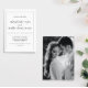 Celebre sua história de amor com este convite de casamento de fotos em preto e branco eterno. Apresentando uma tipografia elegante e um layout de foto de cheio no verso, ela oferece uma estética moderna, porém clássica, que é perfeita para casamentos formais. Personalize com seus nomes, detalhes de casamento e foto para uma manutenção sofisticada e significativa.