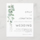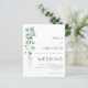 Um valor para o alternativo do ORÇAMENTO em tamanho menor de 4,5 x 5,6" de semirbrilho de 110 lbs, que é de espessura semelhante a um cartão postal (no entanto, não é adequado para uso como cartão postal). POR FAVOR, OBSERVE QUE HÁ UM convite por folha. Convite para casamento de fotos Eucalyptus moderno de orçamento. Um design moderno contemporâneo, com sua foto favorita preenchendo todo o dorso. Com tipografia de estilo simplista que você pode facilmente personalizar. Um galho elegante de folhas de aquarela eucalipto corre pelo lado esquerdo.