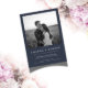 Este convite de casamento elegante e minimalista apresenta um layout de foto de cheio com tipografia serif limpa e um histórico clássico de marinho. Perfeito para casais que querem um toque pessoal e eterno no seu dia especial.