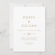 Este convite de casamento para fotos de tipografia de ouro chico é perfeito para um casamento moderno. O simples design apresenta ouro minimalista clássico e tipografia branca com um toque rústico. Personalizável em qualquer cor. Mantenha o design mínimo e elegante, como está, ou personalize-o adicionando seus próprios gráficos e trabalhos de arte. Personalize a frente com sua foto de noivado favorita e seus nomes.