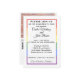 As cores do indicador do arco-íris enquadram seu convite de casamento especial. Completamente personalizável, digite seus detalhes e carregue suas fotos para a parte traseira do cartão. Se você tiver um site de casamento, substitua o campo de código QR pelo endereço do seu site. Verifique os itens correspondentes também. A Loja de eventos LGBTQ atende às suas necessidades. O nome da loja e o Código QR estão incluídos na parte traseira da placa. No entanto, são amovíveis - é o seu convite!