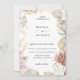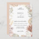 Lindas flores da selva de aquarela e folhagem em coloração chic terrestre de rosa-linho, prata-sábio, branco-marfim, laranja-rústica e bege-arenoso. O cartão inclui elementos de orquídeas, rosas, gramíneas-pampas, lírios e frondes de palma. A parte traseira da placa mostrada na linha rosa pode ser personalizada.
