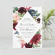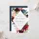 Nosso convite para o casamento do Radiant Bloom rodeia seus detalhes de casamento com um quadro geométrico de flores pintadas de aquarela em burgundy marsala, rosa-pincelado e azul-marinho, com folhagem verde de eucalipto. Uma escolha moderna, porém orgânica, em verde e branco, com botânicos luxuosos, coloridos e letras escritas à mão.