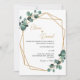 Este elegante convite de casamento verde apresenta uma estrutura luxuosa de ouro e um layout geométrico moderno, acentuado com folhagem exuberante. Perfeito para casamentos formais, românticos ou de jardim. Totalmente personalizável para ajustado do seu estilo pessoal.