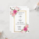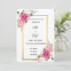 Este elegante design de convite de casamento apresenta um quadro retangular de ouro chic adornado com rosas cor-de-rosa pincelado, marfim e magenta. O layout do centro minimalista oferece bastante espaço para detalhes personalizados, enquanto os casais também podem adicionar um conveniente código QR para RSVP ou links de sites de casamento. Um na moda da simplicidade moderna e romance floral, perfeito para casamentos, noivados, chás de panela ou comemorações de aniversário.