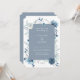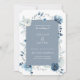 Belo quadro floral de aquarela, convite de casamento. Sombras de azul empoeirado e marinho. Estilo elegante e moderno de design de tipografia. A parte traseira do cartão, mostrada em azul empoeirado, pode ser personalizada.