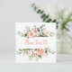 Uma estrutura de aquarela superior e inferior, com cor de pêssego e rosas de pincel, rosas brancas, flores silvestres cor-de-rosa e verde diverso. Os detalhes do seu casamento estão na parte de trás do cartão com elementos florais adicionais. O texto na frente é um tipo de letra personalizado - se você quiser seus nomes neste tipo de letra, envie um e-mail para shutterbug600@yahoo.com