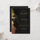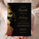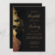 A borda esquerda deste elegante e modesto convite de casamento apresenta uma borda de abstrato de ouro e tinta líquida preta. O texto personalizável combina manuscrito dourado, fontes em copperplate e itálico em um fundo fora de preto. A parte de trás é sólida e escura.