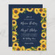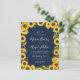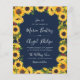 Os girassóis são o complemento perfeito de um casamento temático do país, e adequado para o verão e cair do casamento ao ar livre. Este design apresenta girassol amarelo alegre e ensolarado, cor de água, girassol, sobre um elegante fundo azul marinho. As características deste modelo de convite para casamento podem ser personalizadas.
