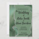 Convites de casamento com espiral verde-agata e design prateada-reluzente no fundo do sábio.