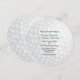 Convite de casamento redondo único, com gráficos de um olhar de bola de golfe de padrão branco. Personalize o texto preto e verde para se adequar às necessidades do seu partido de golfe. Placas RSVP correspondentes disponíveis.
