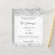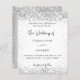 Um fundo branco na frente. Decorado com falso brilho prateado. Personalize e adicione seus nomes e detalhes da festa. Fundo: fundo de prata sujo e brilho.