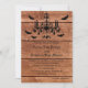 Este convite de casamento é acentuado com morcegos circulando um candelabro de cristal negro em um fundo de conselho de celeiro, fazer perfeito para o casamento rústico de Halloween. Se forem necessários itens adicionais nesta coleção, entre em contato conosco em prettyfancyinvites@gmail.com com sua solicitação.