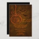 Uma encantadora gaiola de abóbora com dois morcegos voando para fora dela significando tanto um casamento quanto um evento de Halloween. A abóbora tem poços e bares. O convite tem sombras laranja e pretas para definir o humor assustador do Dia das Bruxas.
