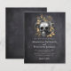 Um crânio gótico e convite para o casamento floral. **LEIA ANTES DE ENCOMENDAR** Se você fizer alterações na forma ou no tamanho ou escolher outro produto e o design for cortado de alguma forma ou não parecer direito na página, você precisará usar o Serviço de Design ao Vivo para que alguém ajuste o layout para você, a menos que você se sinta confortável fazendo isso sozinho. Seu pedido vai diretamente para as impressoras, de modo que o que você vê na tela é o que será impresso e enviado a você. Com isso em mente, por favor, verifique também triplamente se há erros de ortografia ou informações incorretas antes de fazer seu pedido. **POR FAVOR LEIA ANTES DE COMPRAR** Nossa pequena faixa de papelaria orçamental mede 4,5" x 5,6" e ajustado envelope A6, que estão disponíveis em todos os tipos de cores em sua loja de papelaria local ou você pode adicionar brancos ao seu pedido antes de fazer o check-out. Cada folha é um convite - não é necessário cortar. O estoque de cartão é branco brilhante, com acabamento semirbrilhante e um peso de 110 lbs, adequado para convites. NÃO aconselhamos você a escolher a opção de papel satin, pois é um papel de 80 lb muito mais fino, que é mais parecido com as páginas de revistas do que o estoque de papelão. Se preferir um convite clássico de tamanho 5x7 impresso no estoque de cartão de 120lb com um acabamento mate, você pode transferir esse design para uma placa plana usando as opções de design de transferência. As placas planas não estão na faixa de orçamento, mas você tem uma variedade maior de tamanhos e opções de estoque de cartão e elas são enviadas com envelopes. A forma e o tamanho mais adequados ao design aparecerão nas opções de transferência do design. Se você fizer alterações na forma ou no tamanho ou escolher outro produto e o design for cortado de alguma forma ou não parecer direito na página, você precisará usar o Serviço de Design ao Vivo para que alguém ajuste o layout para você, a menos que você se sinta confortável fazendo isso sozinho. Seu pedido vai diretamente para as impressoras, de modo que o que você vê na tela é o que será impresso e enviado a você. Com isso em mente, por favor, verifique também triplamente se há erros de ortografia ou informações incorretas antes de fazer seu pedido.