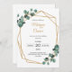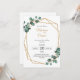 Este convite de casamento verde apresenta um quadro de hexágono dourado com folhagem verde elegante. Perfeito para casamentos modernos, de vassoura ou ao ar livre. Totalmente personalizável para corresponder ao seu tema de casamento natural e geométrico.