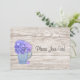 Este Convite para Casamento de Hydrangea apresenta um florescimento de Hydrangea em um lançador de vidro de depressão. Excelente para casamentos no campo! Procure RSVP correspondente e Salve os Anúncios de Data.