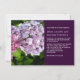 A linda e vibrante hipérsia roxa adorna este convite de casamento. Personalize o seu gosto selecionando cores de fundo ou cores de fonte diferentes. Legal para um casamento de Primavera ou Verão ou destino tropical/ilha. Veja nossos outros produtos em nossa coleção de Hydrangea.