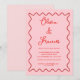 Convite para casamento de Wavy Frame, Arco Vermelho Cor-de-Rosa Este elegante convite para casamento exumenta o charme eterno com sua matiz rosa e vermelha rica, criando uma atmosfera lindamente romântica. O arco de vintage no centro adiciona um toque de elegância clássica, enquanto o quadro de onda melhora o design geral com uma aparência graciosa e fluente. Perfeitamente adequado para casais que buscam uma mistura de estilos tradicionais e modernos, esse convite vai capacitar seus convidados com sua delicada e sofisticada estética. A combinação de tons suaves e detalhes intrincados o torna ideal para um casamento que celebra o amor, o refinamento, e a beleza da design inspirada no vintage.