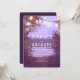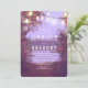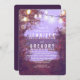 Convite criado para casamento com fachada d'água traça cenas de lago e cordas-luzes caminho das árvores. Um ótimo humor tarde da noite - luzes e cores de matiz azul e roxa. A natureza romântica inspirou convite para casamentos perto do lago ou rio.