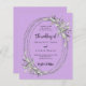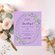 Um fundo colorido de lavanda. Decorado com verde e quadro oval. Personalize e adicione seus nomes e detalhes. 1 folha = 1 convite impresso de borda a borda.