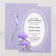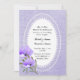 Adorável convite de casamento lavanda feito em um olhar de burlap, com uma área de texto oval de aparência branca. Bonito flores de aquarela roxas, decoram o canto inferior esquerdo do convite. O texto em preto está pronto para personalizar o seu evento. Os produtos correspondentes estão disponíveis.