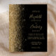 A borda esquerda deste elegante convite de casamento moderno apresenta uma borda falsa de ouro. O texto personalizável combina manuscrito colorido de ouro pálido, fontes copperplate e itálico em um fundo preto. O verso apresenta um design preto e dourado correspondente.