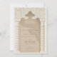 Este maravilhoso convite para o casamento desenhar inspiração da rica tradição da arquitetura islâmica, mostrando um design de arco palatial, elegantemente flanqueado por colunas com padrão Chevron em uma paleta matizada de creme, taupe e ecru. O intricado detalhamento em forma de rendas no alto da arca, rendido em tons de areia e marfim, acrescenta uma camada de sofisticação, invocando a beleza eterno de intrincada obra plástica encontrada em mesquitas históricas. Este convite é o epítome da elegância e da herança, estendendo um convite gracioso para seus convidados com sua mistura de arte cultural e elementos modernos de design, estabelecendo a palco de um casamento que celebra o amor e a tradição.