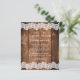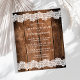 Este convite de casamento para madeiras e lugares rústicos é uma forma encantadora e romântica de convidar convidados para o seu dia especial. Ele apresenta um fundo de madeira com sutil textura de grãos, delicados sotaques de rendas, fazer perfeito para um casamento no país ou para casais querendo uma sensação quente e íntima. Use as ferramentas de design para atualizar o texto e a fonte.