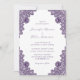 Estes elegantes convites de casamento com rendas florais roxas são perfeitos para convidar seus convidados para sua festa de casamento rústica roxa.