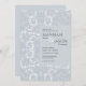 Esses convites de casamento planos de 5" x 7" apresentam um design elegante e elegante de renda crocheteira em uma tonalidade macia de azul empoeirado.