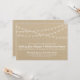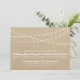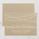 Simples, mas tão encantadoras filamentos de luzes rústicas dão aos seus convidados uma indicação do que virá no dia BIG! Este convite inspirado na rústica tem um fundo kraft natural, e o equilíbrio perfeito de fontes em Branco. Projetado exclusivamente para o Zazzle, este convite dá o tom para um casamento em movimento, rústico. Também estão disponíveis os cartões Salvar a Data e Resposta correspondentes. Adicione um carimbo de casamento de Envelopes da nossa extensa coleção de correio para combinar perfeitamente com o seu convite. Envelopes, invólucros de envelopes e invólucros Pocket® estão disponíveis como um complemento (à direita) através do zazzle.com